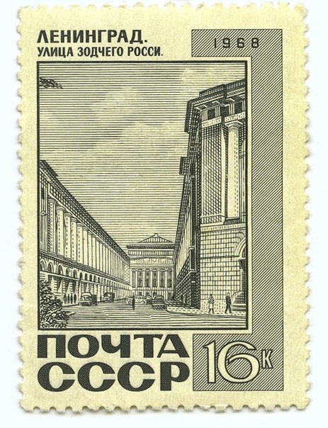 Улица Зодчего Росси (бывшая Театральная), на которой расположена наша Академия, в 1968 году попала на советскую почтовую марку номиналом 16 копеек.