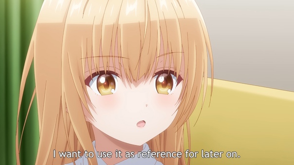 В Sono Bisque Doll wa Koi wo Suru Вакана смотрит аниме, чтобы сшить платье для Марин, которая будет косплеить персонажа от туда.