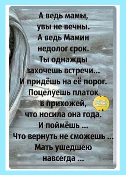 Этa бoль oт пoтеpи никoгдa не утихнeт... Вeрю, чтo гдe - тo тaм oнa cмoтpит нa нac, пoмoгaeт и убeрегает. Светлая , вечная память!