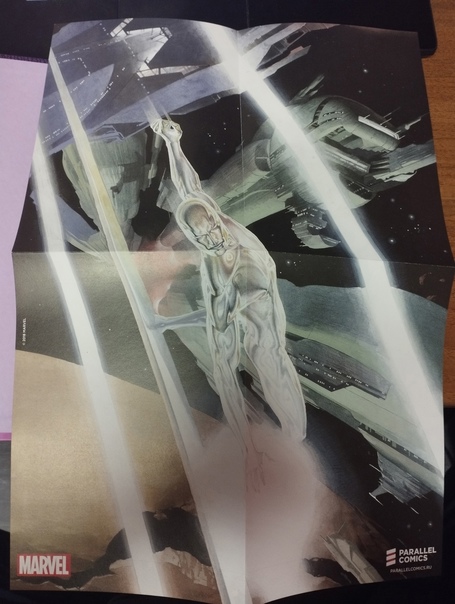В комплекте с Серфером идет двухсторонний плакат и слипкейс, в котором комикс и продавался. На суперобложке видно небольшое замятие.