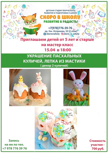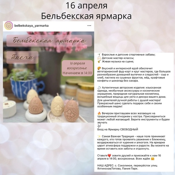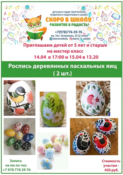 Чтобы ожидание праздника было ярким, а день Пасхи радостным - мы собрали для вас и ваших деток анонсы мастер-классов и мероприятий.