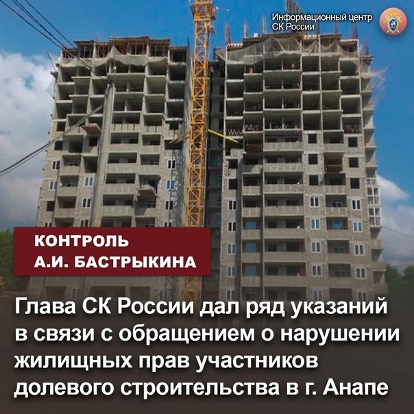 Глава СК России дал ряд указаний в связи с обращением о нарушении жилищных прав участников долевого строительства в г. Анапе