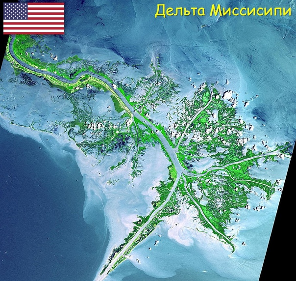 6) Дельта Миссисипи находится в штате Луизиана, США. её площадь составляет 29 тыс. кв. км. Состоит из 5 ключевых рукавов. Дельта характеризуется большим биоразнообразием, благодаря чему способствует развитию рыболовства.