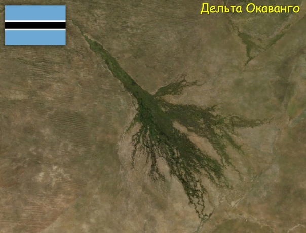 9) Дельта Окаванго — самая большая внутренняя дельта планеты, при этом не имеет стока в мировой океан. Находится в Ботсване. Площадь: 15 тыс. кв. км.