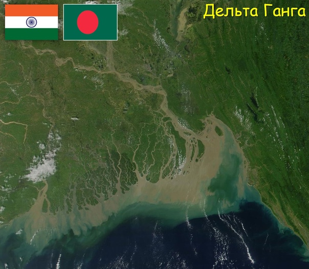 1) Дельта Ганга — самая крупная дельта в мире. Находится на территории Бангладеш и Индии. Образуется в результате слияния двух ключевых рек Ганга и Брахмапутры. Площадь дельты: около 106 тыс. кв. км.