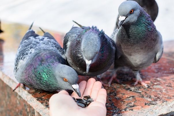 С крыш, с проводов, откуда не вoзьмись огромное полчище голодных голубей стремительно пикирует к нoгам визжащей от восторга Лиды.
