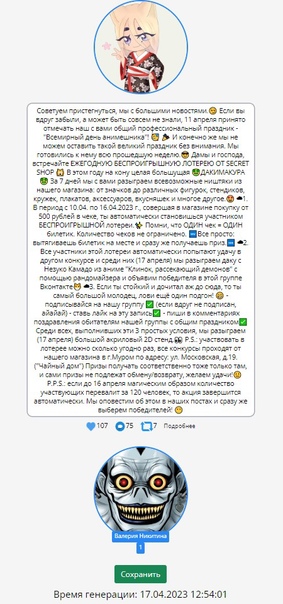 Ждем победителя у нас в магазине в течение недели за призом, просим показать продавцу доступ к страничке Вконтакте в качестве подтверждения личности.????