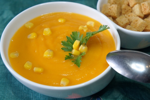 СУП -ПЮРЕ ИЗ ТЫКВЫ С КУКУРУЗОЙ И ПОМИДОРАМИ
