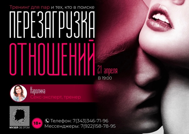В эту пятницу Музей об ЭТОМ приглашает на "ПЕРЕЗАГРУЗКУ ОТНОШЕНИЙ" ???? – это гармонизирующий и развивающий тренинг для пар и тех, кто в поиске. Для тех, кто хочет лучше понимать себя и своего партнера, и на основе этого понимания строить взаимное счастье.
