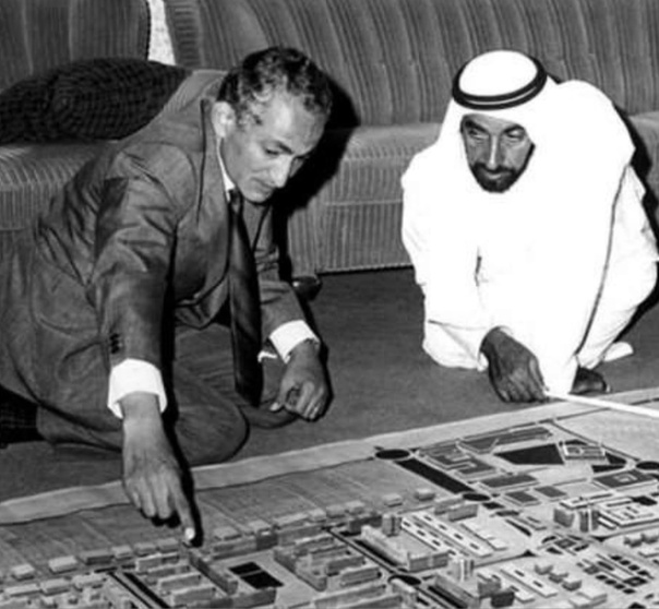 Шейх Зайд рассматривает план строительства Абу-Даби, 1974 год.
