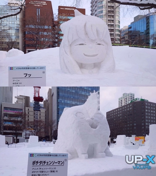 Аня и Почита из снега на Snow Miku 2023, Хоккайдо.