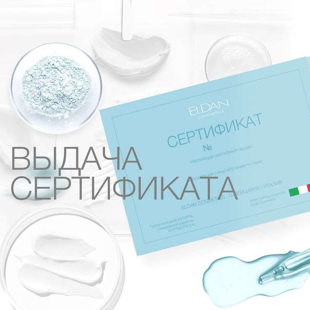 ПРИ ПРОХОЖДЕНИИ ИНТЕНСИВА ВЫ ПОЛУЧАЕТЕ СЕРТИФИКАТ ELDAN COSMETICS!