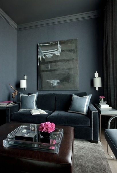 Темно-серый цвет стен и потолков в интерьере...