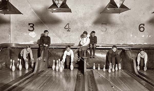 "Кегельные мальчики", которые следили за игрой в боулинг, и заново расставляли сбитые кегли, 1914
