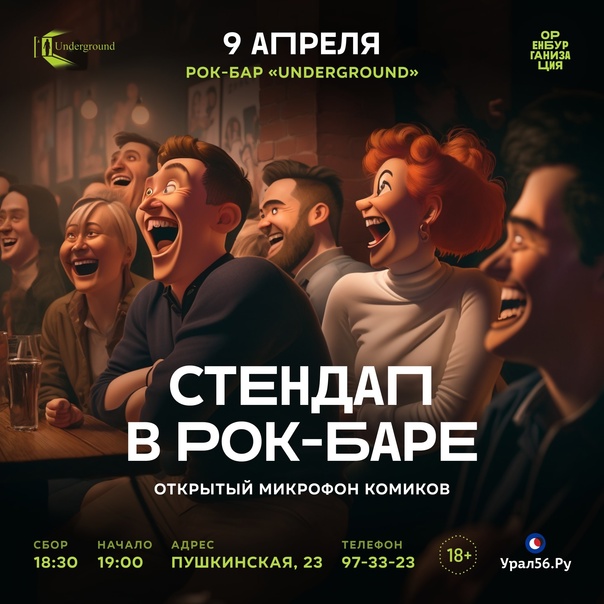 Это потому, что 9 апреля открытый микрофон стендап-комиков в рок-баре «Underground». Опытные комики проверяют новые шутки, новички пробуют себя в стендапе. Выступить может любой желающий!