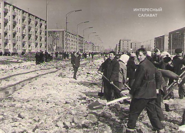 Улица Ленина, весна 1969 год. Школьники раскидывают снег ❄