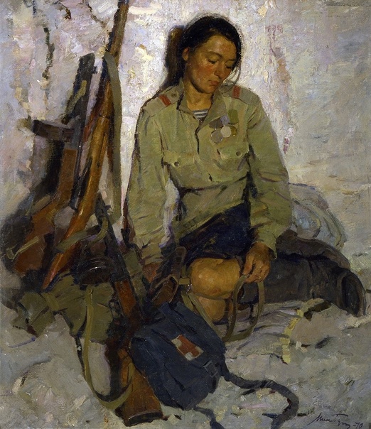 Вот несколько шедевров от мастеров Студии военных художников имени М.Б. Грекова, посвященных женщинам на войне.