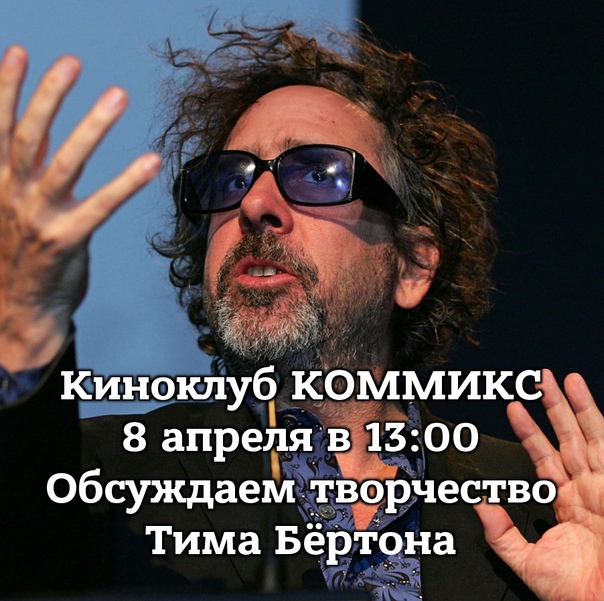 ???? В эту субботу 8 апреля в 13:00 ждём вас на встрече киноклуба КОММИКС, в этот раз обсудим творчество знаменитого режиссера Тима Бёртона.