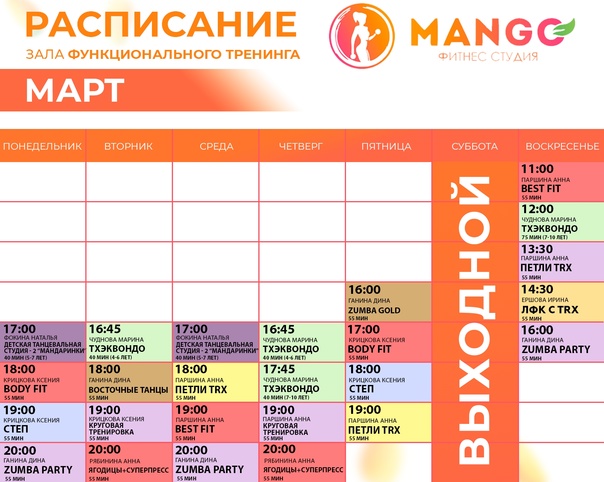 ???? Расписание на четверг - 23 марта:???? Зал...