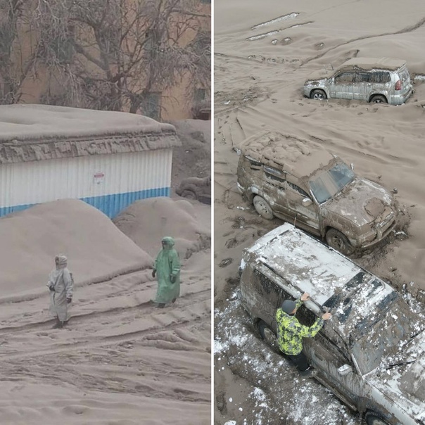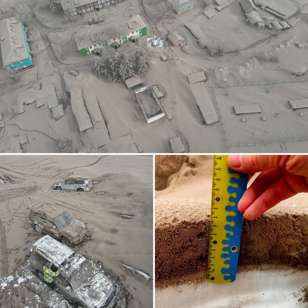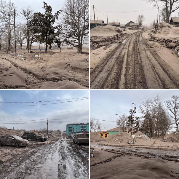 ⚡️Вот как выглядит поселок Ключи, расположенный в 50 километрах от вулкана Шивелуч на Камчатке.