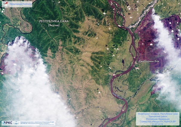 Рocкocмoc oпубликoвaл cпутникoвыe cнимки пoжapoв в Сибиpи
