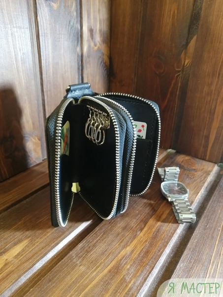 Ключница двойная на молниях именная из кожи...