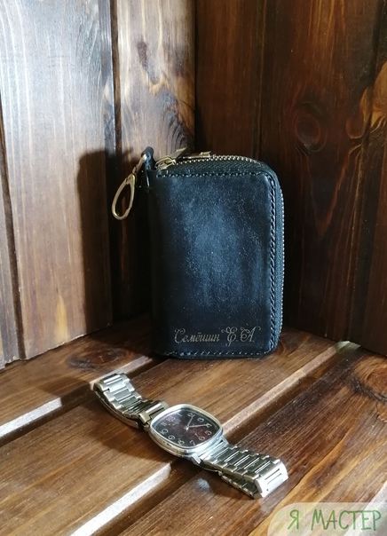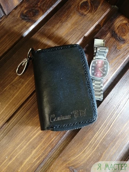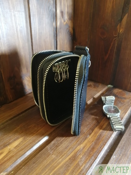 Ключница двойная на молниях именная из кожи растительного дубления с лазерной гравировкой. Итальянская краска глубокого проникновения, вощёная нить, ручной шов.