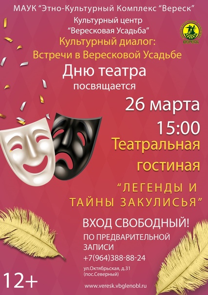 Приглашаем вас на творческую встречу с замечательными актерами, посвященную Всемирному дню театра.