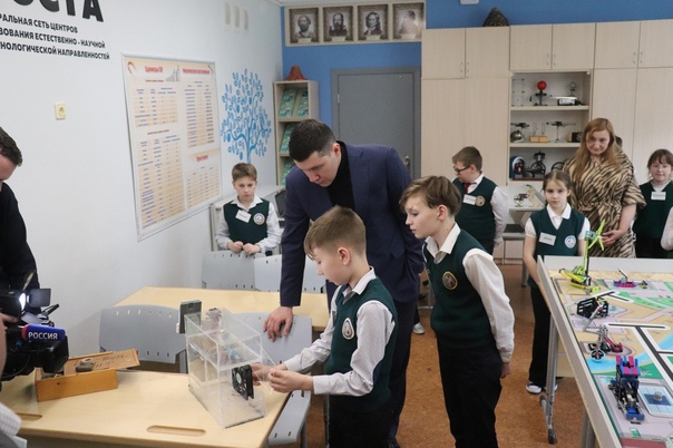 В кабинетах образовательного центра «Точка роста» ученики представили свои исследовательские работы, делились достижениями в научной сфере. Ребята познакомили гостей со своим проектом по робототехнике, а также представили идею использования дождевой воды для генерации электроэнергии. Следующей точкой посещения гостей стал штаб самоуправления, где работают ученики школы по направлению РДДМ «Медиа и коммуникации». Ученики рассказали о самых значимых достижениях и ближайших масштабных мероприятиях.