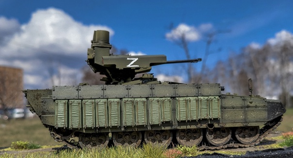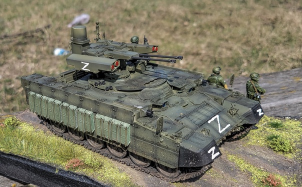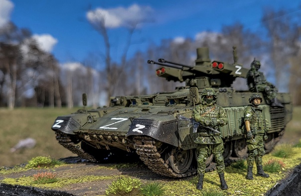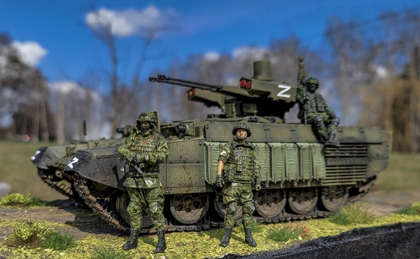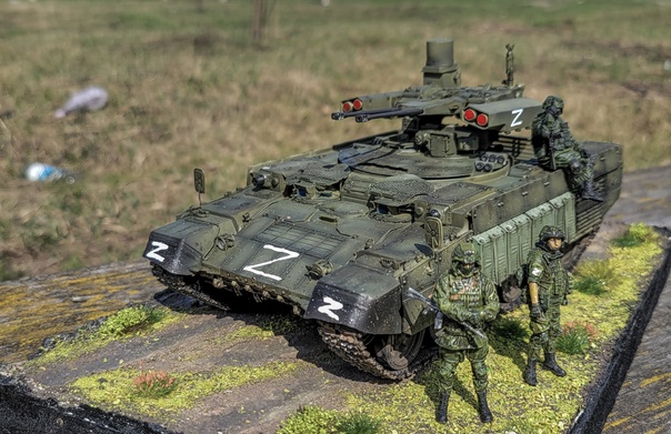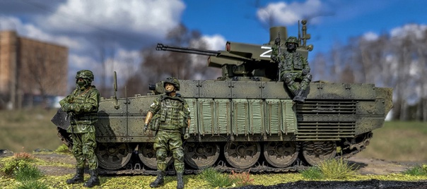 Russian Obj199 BMPT Ramka w ATGM launcher "ATAKA" от Trumpeter в 35-ом масштабе. Образ не имеет привязки к реальному прототипу. Фигурки Live Resin и АлиЭкспресс, кочуют от фотосессии к фотосессии=) Окраска акрилом Tamiya, везеринг жижками и пигментами Ammo Mig. Традиционно, не без косяков, но приятного просмотра=)