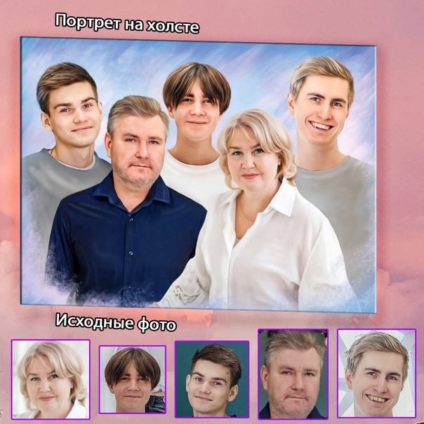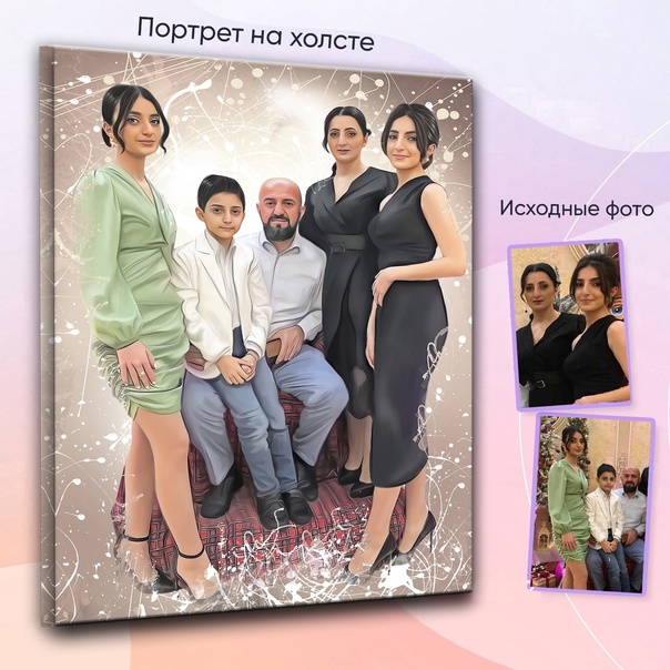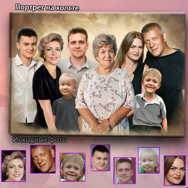 С 2017 года рисуем уникальные семейные портреты на холсте по отдельным фотографиям!