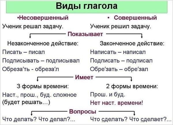 Наглядные схемы и таблицы о глаголе