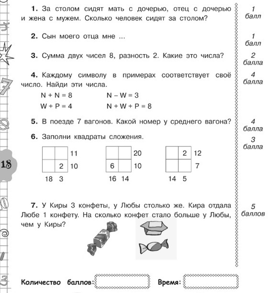 Задания по математике для начальных классов