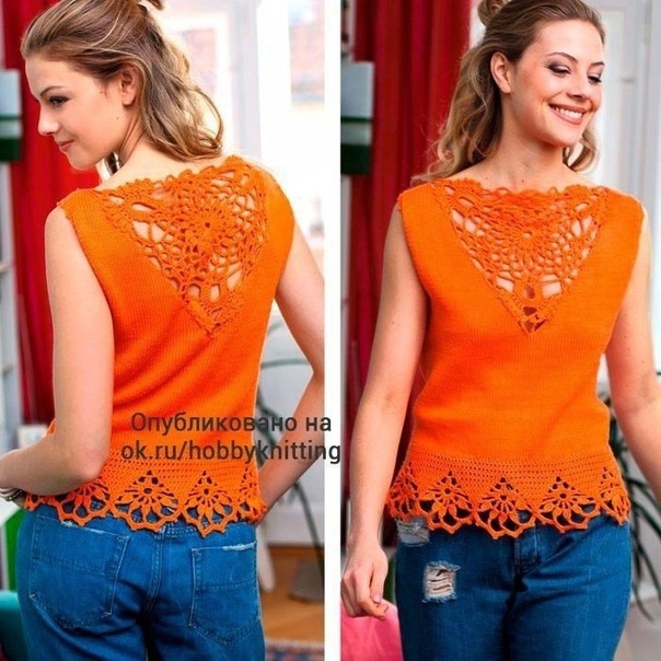 Топ крючком с ажурным декольтеИзыскaнные...