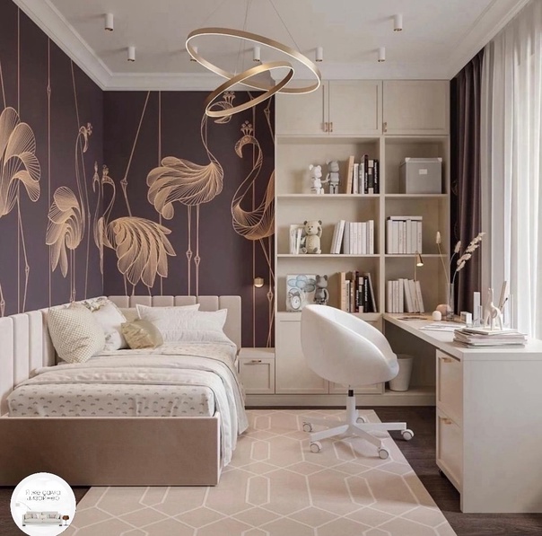 Комнатв для девочки-подростка! С одной стороны, смотрится уютно, спокойно и красиво, а с другой просто шикарно.