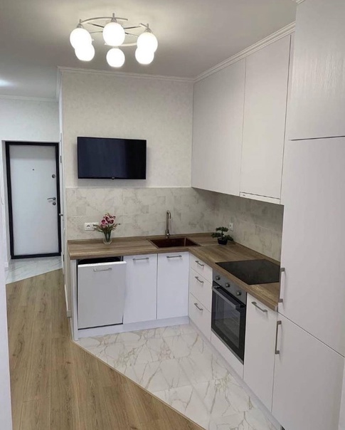 Кухня с зониpованием при помощи пола